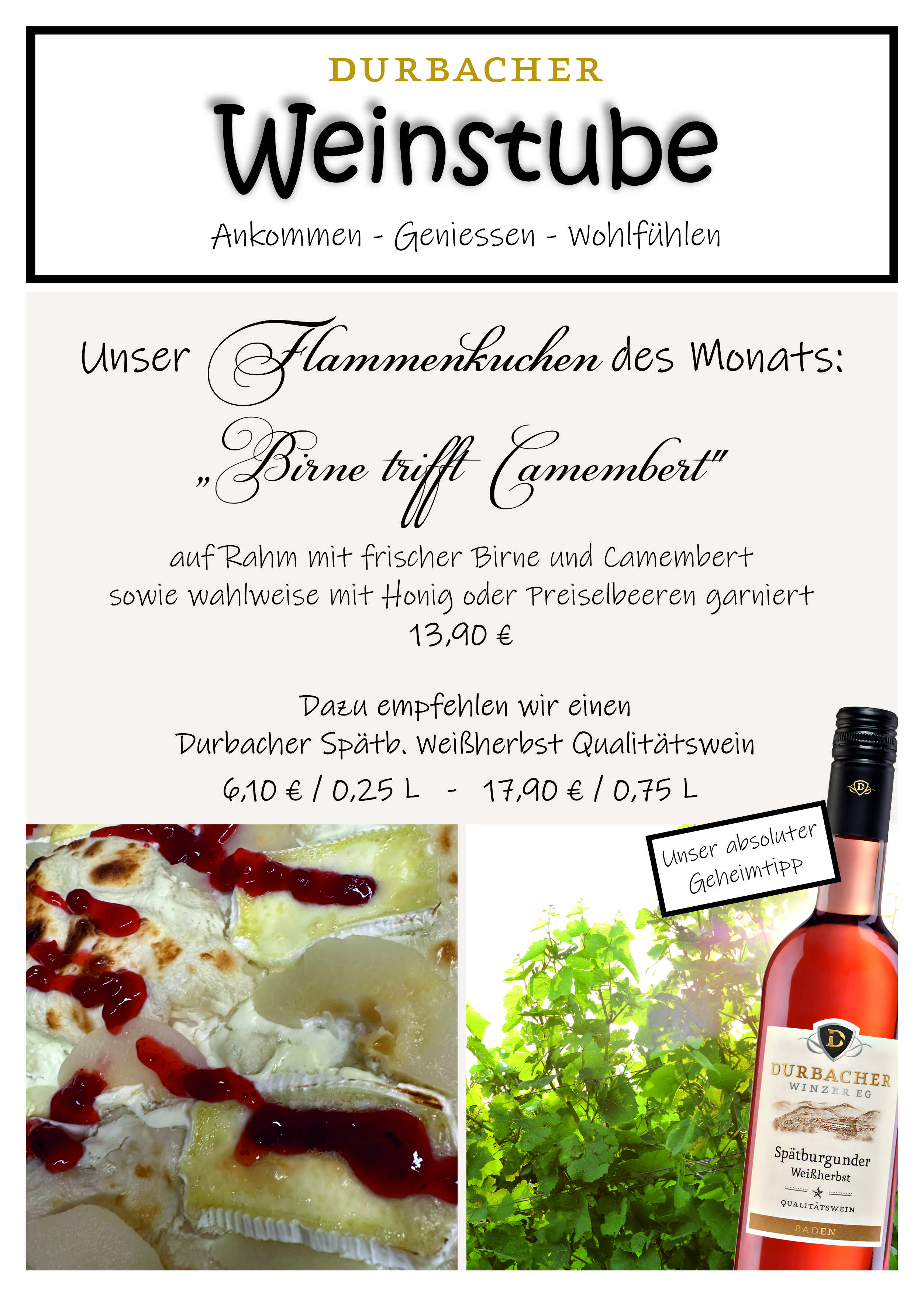 Flammenkuchen mit Rahm klein: € 7,50 Portion: € 9,90
